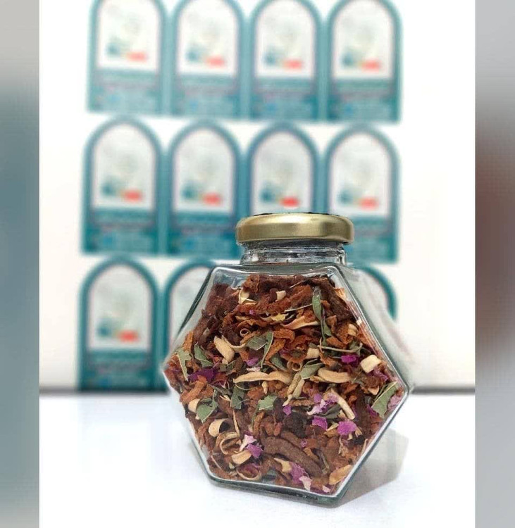 ترکیبات چای میوه شامل: گل محمدی-به -آویشن-بهارنارنج می باشد.